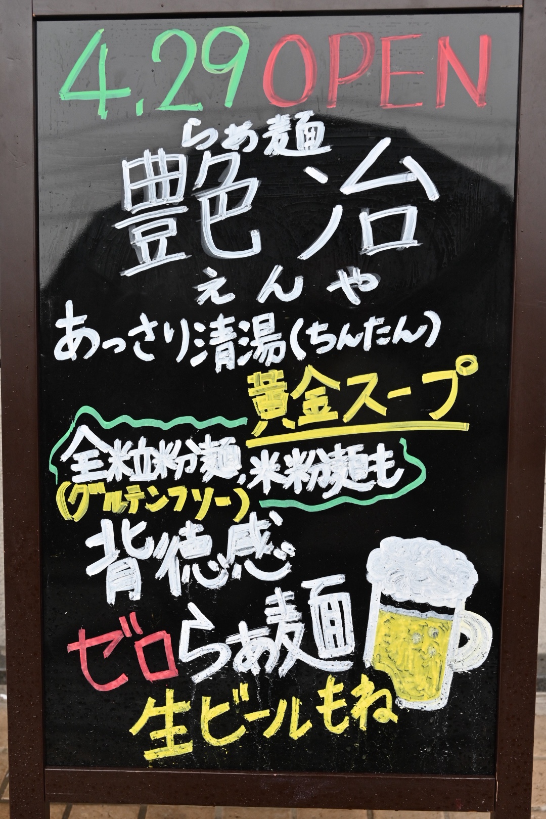 4月29日(水祝)、らぁ麺艶治(えんや)というラーメン屋さんがオープン予定です。